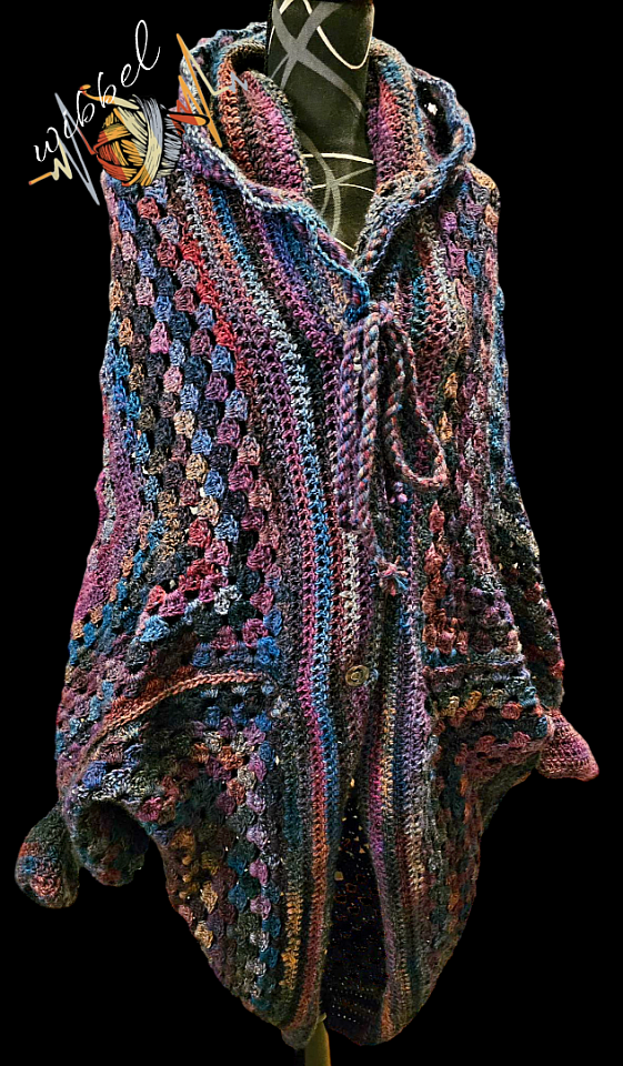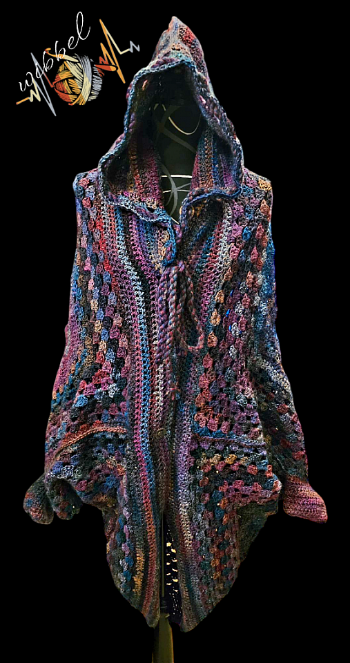 Mit einem mir vorliegenden Muster wollte ich ursprünglich mit der noch vorhandenen Restwolle mehrere Quadrate häkeln und zu einer Jacke zusammensetzen.