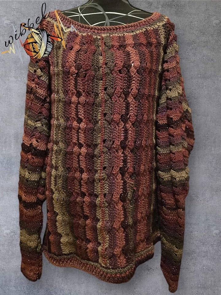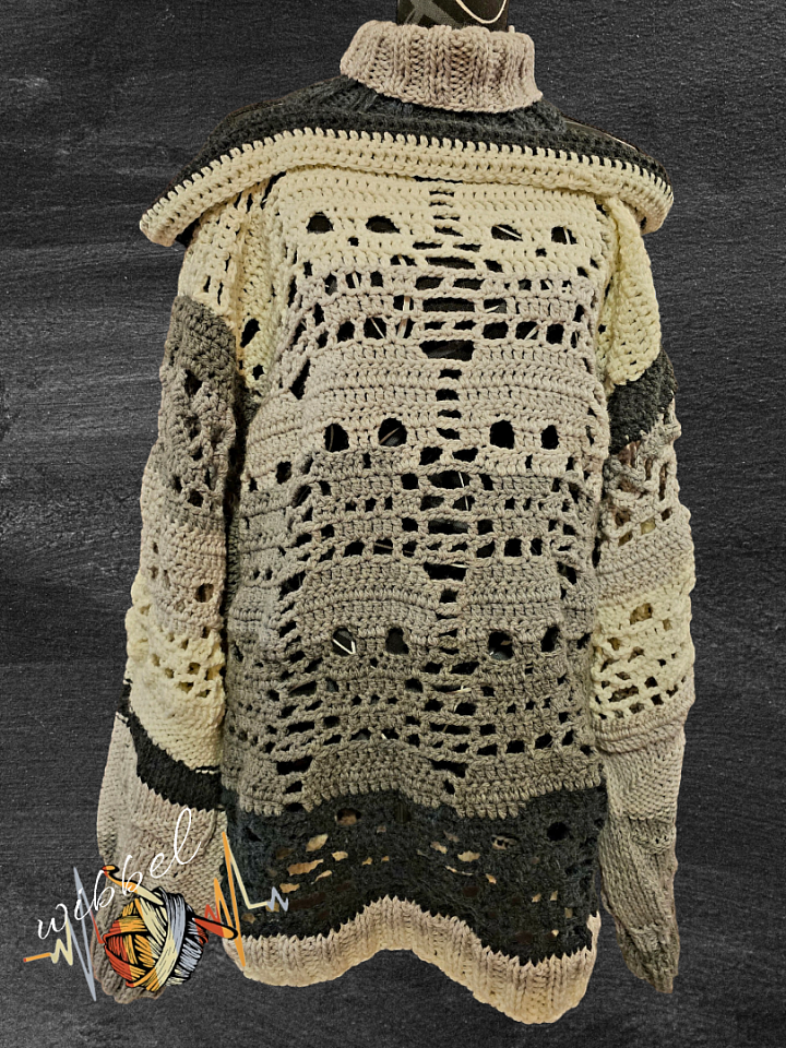 Die Wolle hat meine Tochter bei einer Shoppingtour entdeckt und dabei den fertigen Pullover bereits vorm inneren Auge gehabt.
