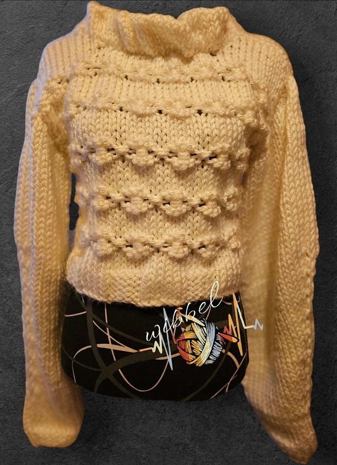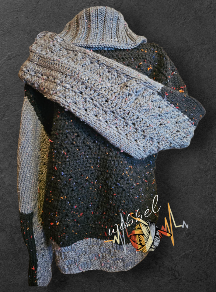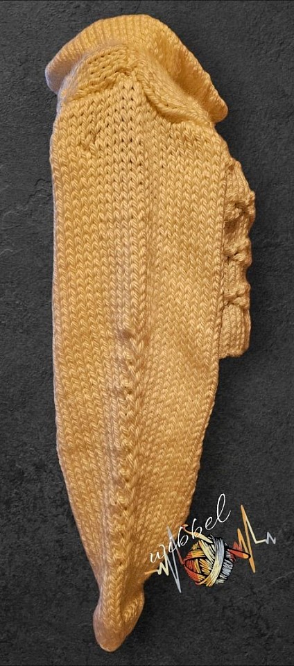 Es ist schon eine Zeit her das ich ihn gestrickt habe. Ich schätze 3-4 Jahre. Leider ist mir erst wie ich ihn fertig hatte aufgefallen das ich versehentlich gegen 2 rein weiße Knäuel statt 2 cremfarbenen verarbeitet habe. Im Lampenlicht war es nicht zu erkennen. Nichts desto trotz trägt ihn meine Maus zumindest zu Hause.